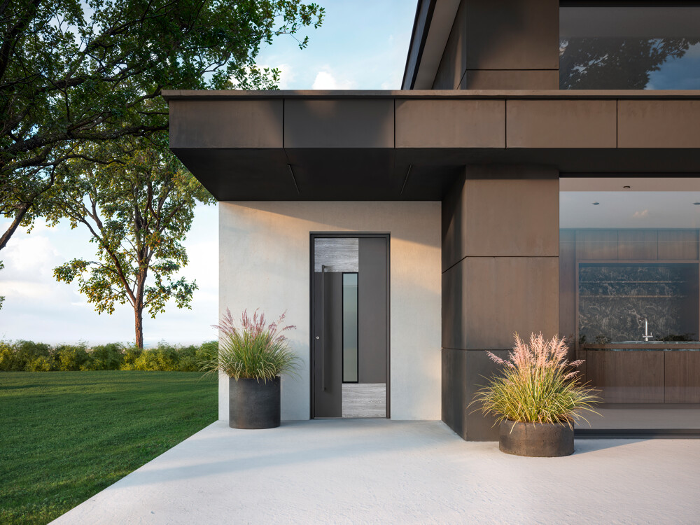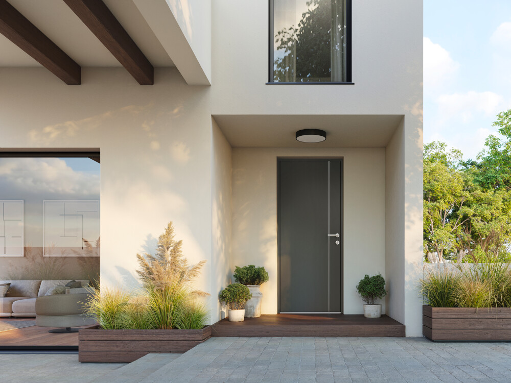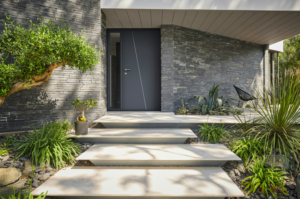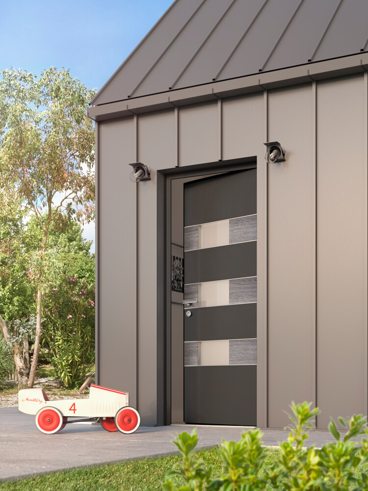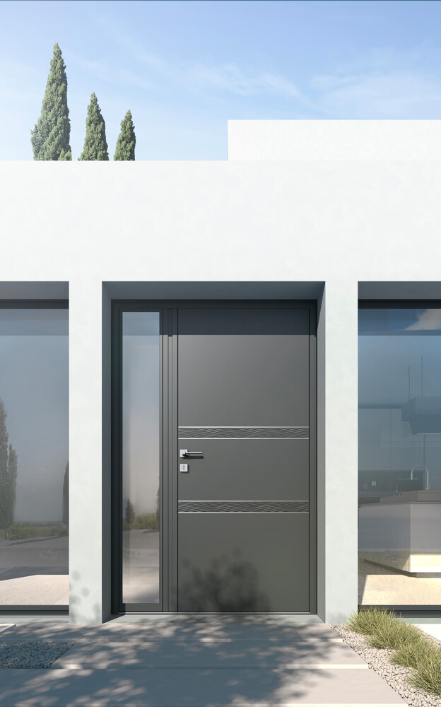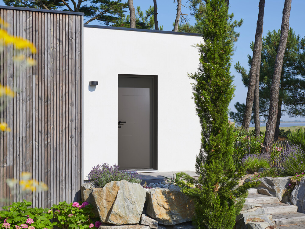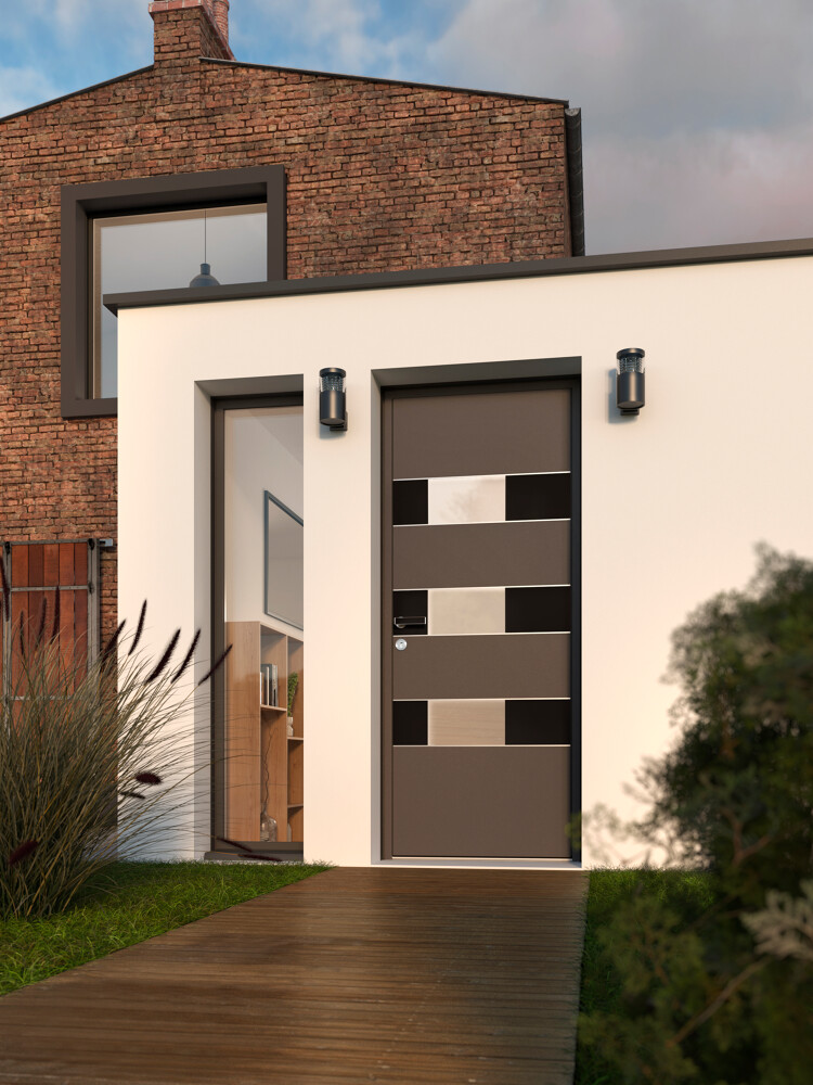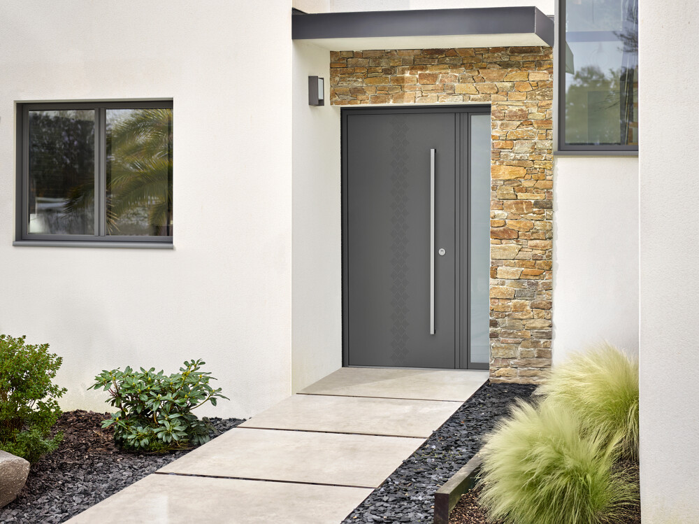 Nos portes d’entrée K-LINE en aluminium se distinguent par leur variété de textures et de styles : effet céramique, sobriété moderne, ou élégance intemporelle.